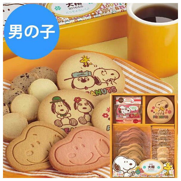 【ギフト対応】 <内祝い お返し 名入れ>スヌーピーのきょうだいが一緒にプリントされたクッキーをはじめ、スヌーピーの形の可愛いクッキーと紅茶が入ったスヌーピーづくしの詰合せ。