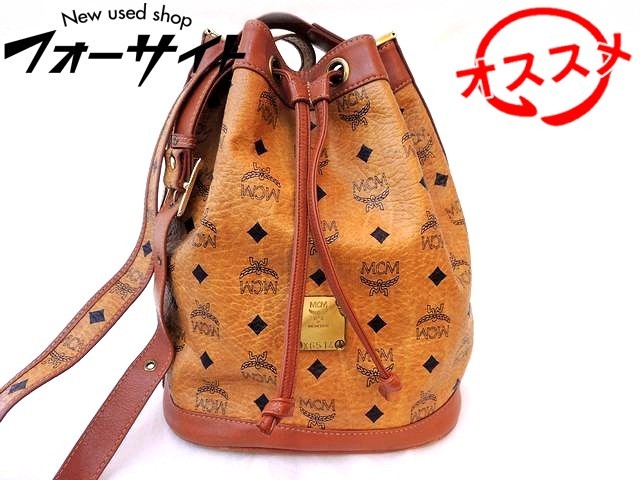 MCM ショルダーバッグ ■ ロゴ 総柄 ブラウン 巾着 バッグ エムシーエム □2K