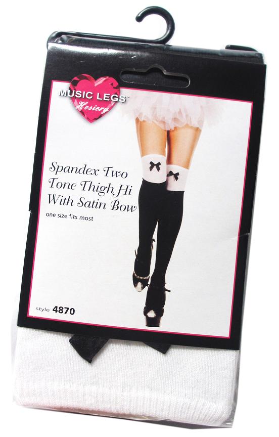 MusicLegs(ミュージックレッグス) リボン付き2トーンサイハイソックス ML4870 黒白 ブラック ホワイト ダンス衣装 メイド コスプレ ゴスロリータ ニーハイソックス 靴下 オーバーニー モノトーン バニーガール ステージ衣装 2A9