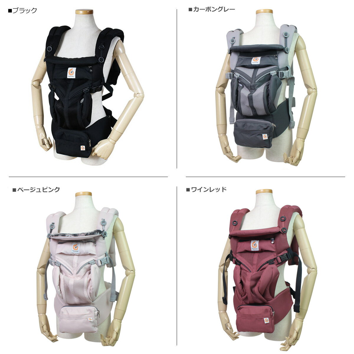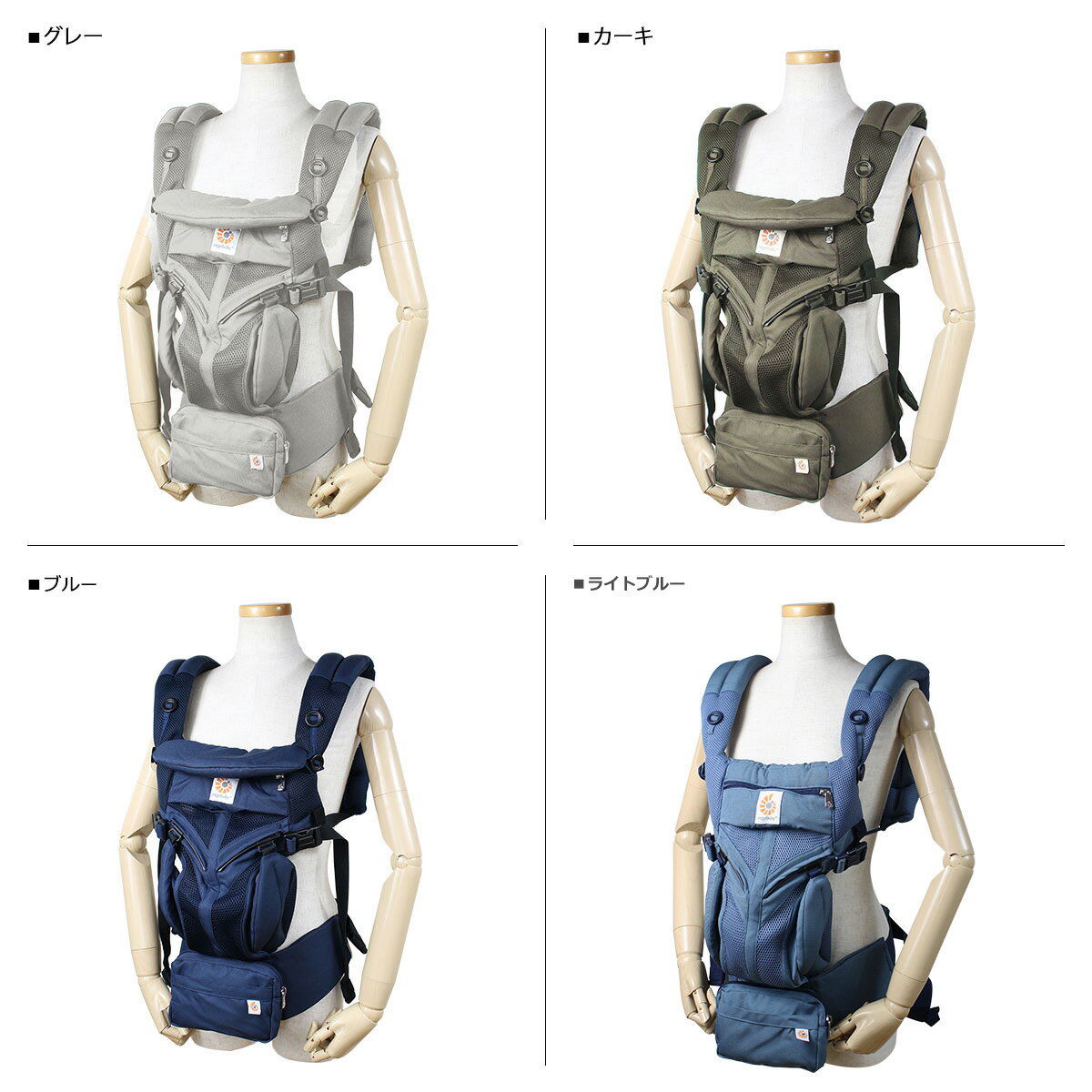 ブランド名 / 商品名 ERGOBABY エルゴベビー / OMNI 360 BABY CARRIER ALL IN ONE COOL AIR MESH BCS360PGREY BCS360PGREEN BCS360PMIDBLU カラー グレー:PEARL GREY カーキ:KHAKI GREEN ブルー:MIDNIGHT BLUE ライトブルー:OXFORD BLUE ブラック:ONYX カーボングレー:CARBON GRAY ベージュピンク:MAUI ワインレッド:PLUM インディゴブルー:INDIGO WEAVE ネイビー:RAVEN 素材 / 仕様 ベビーキャリア本体:内生地、外生地:ポリエステル100% 耐荷重:20kg 肩ストラップ形状:ストレート 腰ベルト固定方法:バックル 対象体重:3.2kg(50.8cm)-20kg 生産国 VIETNAM / INDIA 仕入れや入荷時期により生産国が異なります。