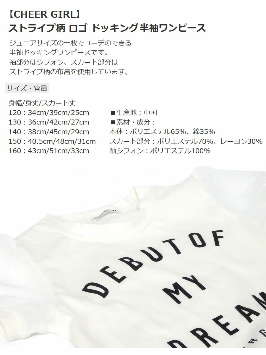●【CHEER GIRL】ストライプ柄 ロゴ ドッキング 半袖ワンピース ジュニアサイズの一枚でコーデのできる半袖ドッキングワンピースです。